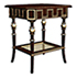 Inspired by Laneventure's Raymond Waites Excursion Side Table. Ornate wooden side table with rattan cane shelf.