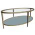 Inspired by Crate & Barrel's Clairemont Coffee Table. Contemporary metal coffee table with glass top and mirror shelf.
