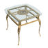 Inspired by Wesley Allen's Sierra Table. Traditional side table with decorative metal frame, glass top and shelf.