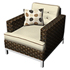 Inspired by Agio's Key Biscayne Armchair. Rattan armchair with metal legs and upholstered cushions and pillows