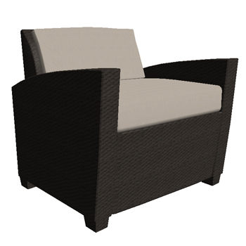 Inspired by Brown Jordan International's Fusion Armchair. Contemporary dark wicker armchair.