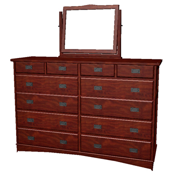 Inspired by Durham Furniture's Mission Revival Dressing Chest and Mirror. Mission style dressing chest with 12 drawers and mirror.