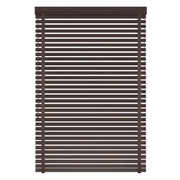 Venetian blind with wooden slats.