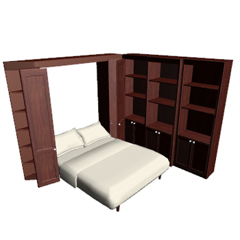 Inspired by The More Space Place's Standard Murphy Bed. Queen size murphy bed with shelving.