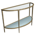 Inspired by Crate & Barrel's Clairemont Console Table. Contemporary metal console table with glass top and mirror shelf. -