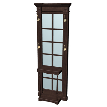 Inspired by Pulaski's Ebony Carlton Manor Hall Tree. Traditional hall tree with mirrored back and four coat hooks.