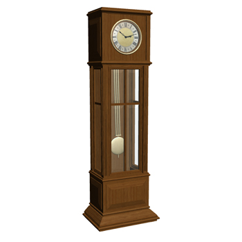 This Windsor Grandmother clock features a scroll pediment mounted on pillars. The door reveals the swing of the pendulum and the gradual drop of the weights. Hand crafted, the Windsor will be an heirloom valued by every generation. -