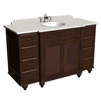 Inspired by Restoration Hardware's British Cane Extra-Wide Single Vanity Sink. Traditional wooden vanity sink with marble top.