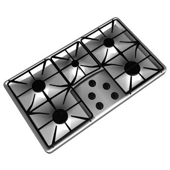 Inspired by General Electric's GE Profile 36" Built-In Gas Cooktop. Contemporary stainless steel gas cooktop with five burners.