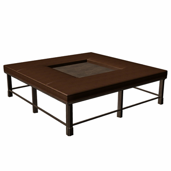 Inspired by Baker Furniture's Bill Sofield Collection Porter Ottoman. Contemporary leather ottoman with metal tray and legs.