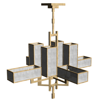 Inspired by Plantation's Perspectives Chandelier. Contemporary chandelier with eight rectangular shades.