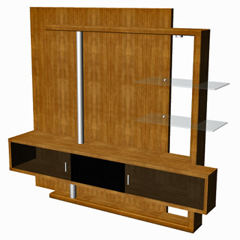 Inspired by Nicole Miller's Empire Plasma Wall Unit. Contemporary plasma wall unit with glass doors.