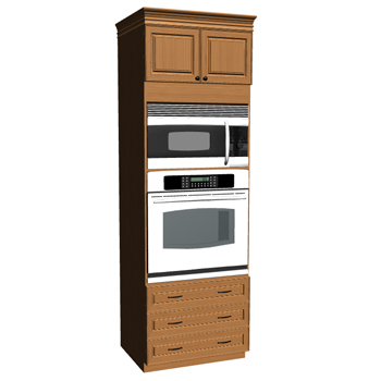 Traditional wooden kitchen cabinet with built-in oven and microwave.