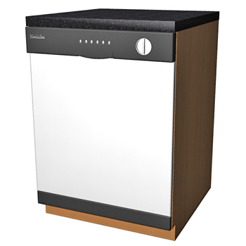 Traditional wooden kitchen cabinet with built-in dishwasher.