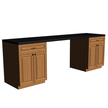 Traditional wooden kitchen cabinets with extended counter space.