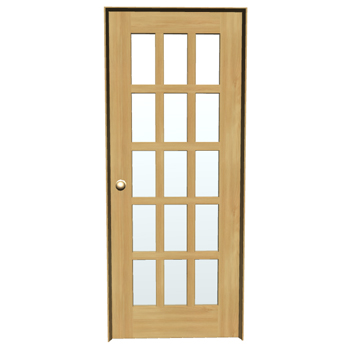 Inspired by Mattawasca's 5225 door. Solid wood door with fifteen modifiable glass panels.