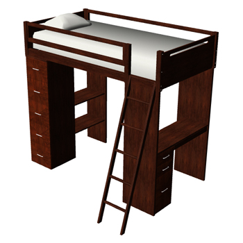 Inspired by Emerald Home Furnishing's Talbot Student Loft Bunk. Student loft bed with desk and storage.