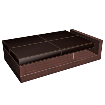 Inspired by Natuzzi's Gio Coffee Table. Contemporary wood and leather upholstered coffee table.