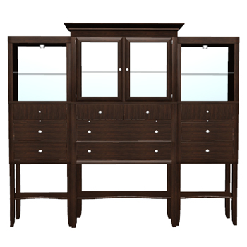 Inspired by Stanley Furniture's Hudson Street Dark Espresso Serving China. Transitional wooden china with mirrored back and glass shelves.