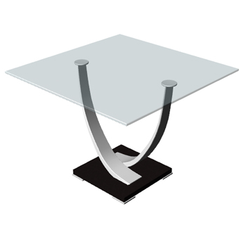 Inspired by Elite Manufacturing Corporation's Tangent Dining Table. Modern glass top high dining table.