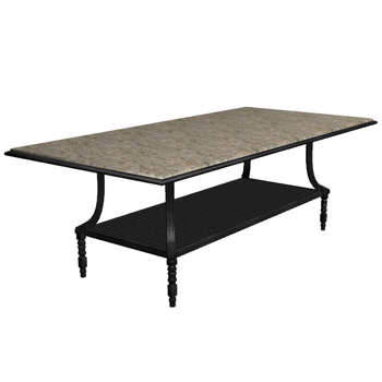 Inspired by Lloyd Flander's Reminisce Dining Table. Rectangular wicker and wood dining table with stone top.