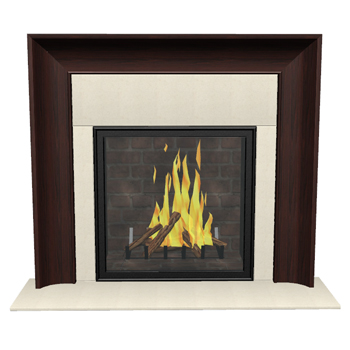 Inspired by Town and Country's TC36 with Black Diamond Burner and Black Porcelain Panels. Contemporary wood and stone fireplace.