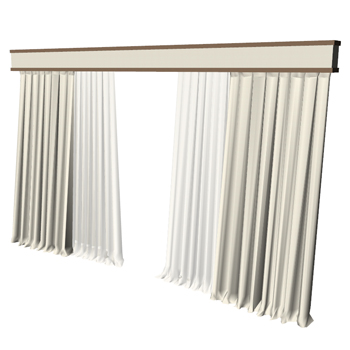 Contemporary floor-length drapes with cornice box.