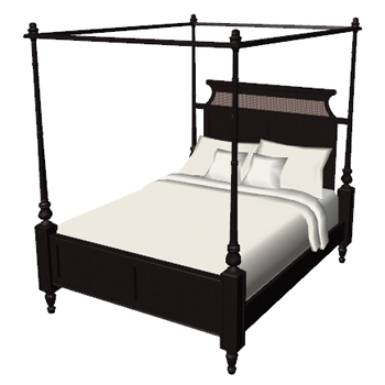 Inspired by Cresent Fine Furniture's Modern Traditional Poster Bed. Wooden poster bed with rattan cane detailing.