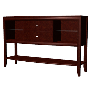 Inspired by American Drew's Tribecca Sideboard. Contemporary wooden sideboard. 2 glass shelves, 2 drawers silver tray