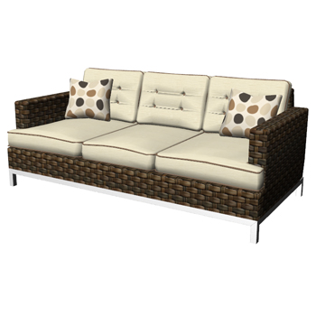 Inspired by Agio's Key Biscayne Sofa. Rattan sofa with metal legs and upholstered cushions and pillows