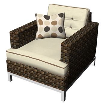 Inspired by Agio's Key Biscayne Armchair. Rattan armchair with metal legs and upholstered cushions and pillows