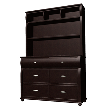 Inspired by Simmon's Kids Vancouver Collection Combo Dresser and Hutch. Traditional wooden dresser with hutch for child's bedroom or nursery.