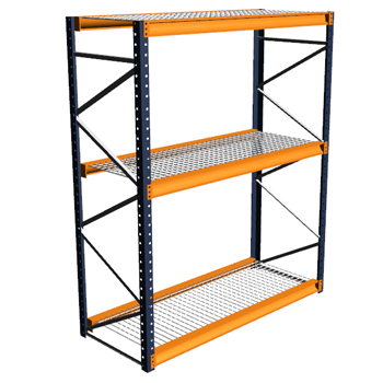 Metal bulk rack shelving for garage or workshop.