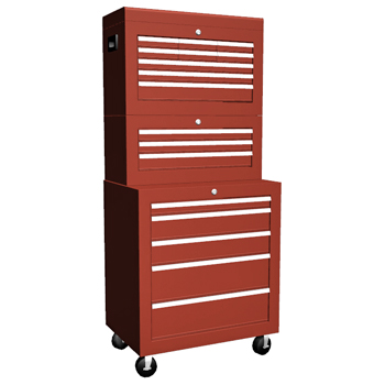 Inspired by Craftsman's 17 Drawer, 26 in. Combo. Seventeen drawer combo tool cabinet on castors.