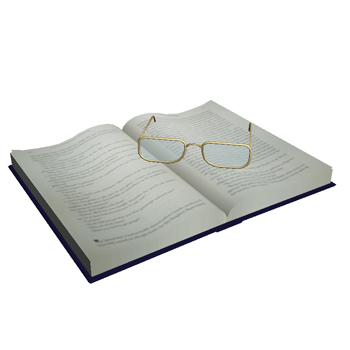 Contemporary open novel with reading glasses.